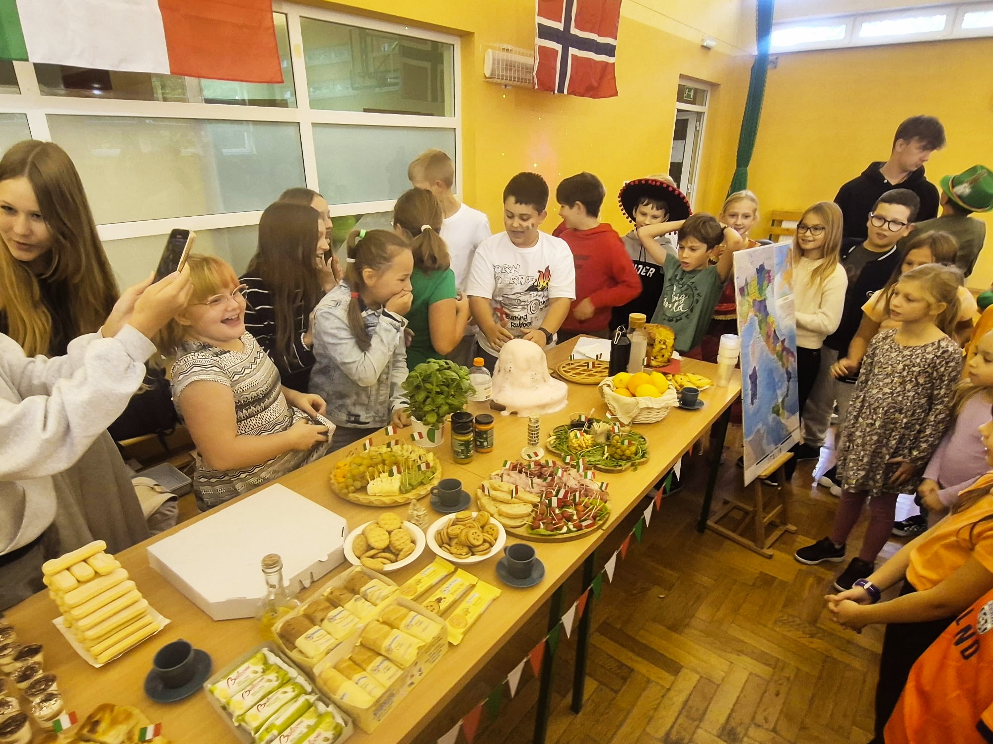 W dniu 26 września 2025r. obchodziliśmy Europejski Dzień Języków. Każda klasa wylosowała kraj i za zadanie miała przygotować informacje o nim, ciekawostki, quizy oraz potrawy. Było to wyjątkowe wydarzenie, podczas którego mogliśmy wspólnie poznać bogactwo kultury, tradycji i smaków różnych krajów. Był to dzień pełen inspiracji, spotkań oraz niezapomnianych wrażeń.