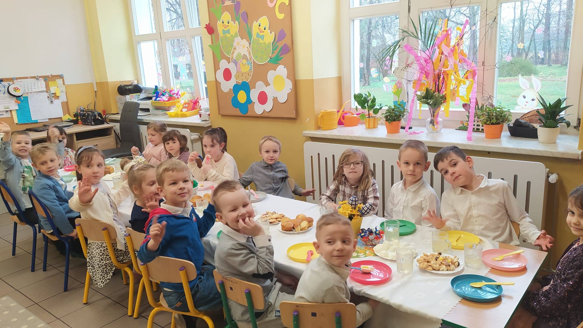 20 marca w zerówce radośnie powitaliśmy wiosnę Rozmawialiśmy o jej zwiastunach, tańczyliśmy z bibułą i wysłuchaliśmy opowiadania „Powitanie wiosny”. Na koniec z wiosennym gaikiem wyruszyliśmy na spacer w poszukiwaniu oznak wiosny