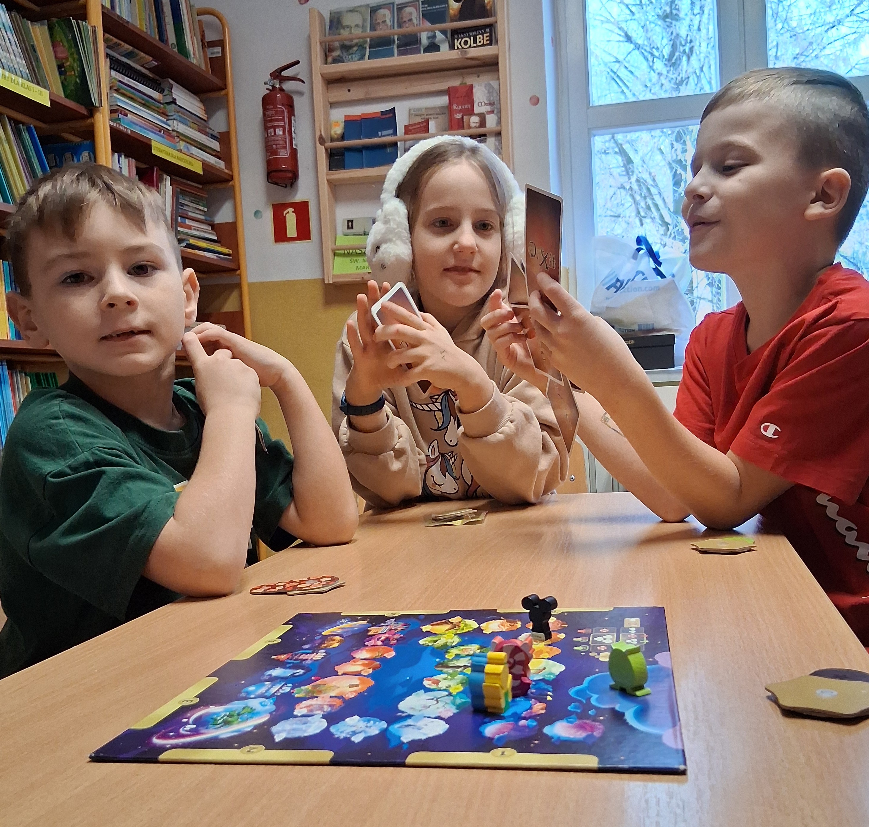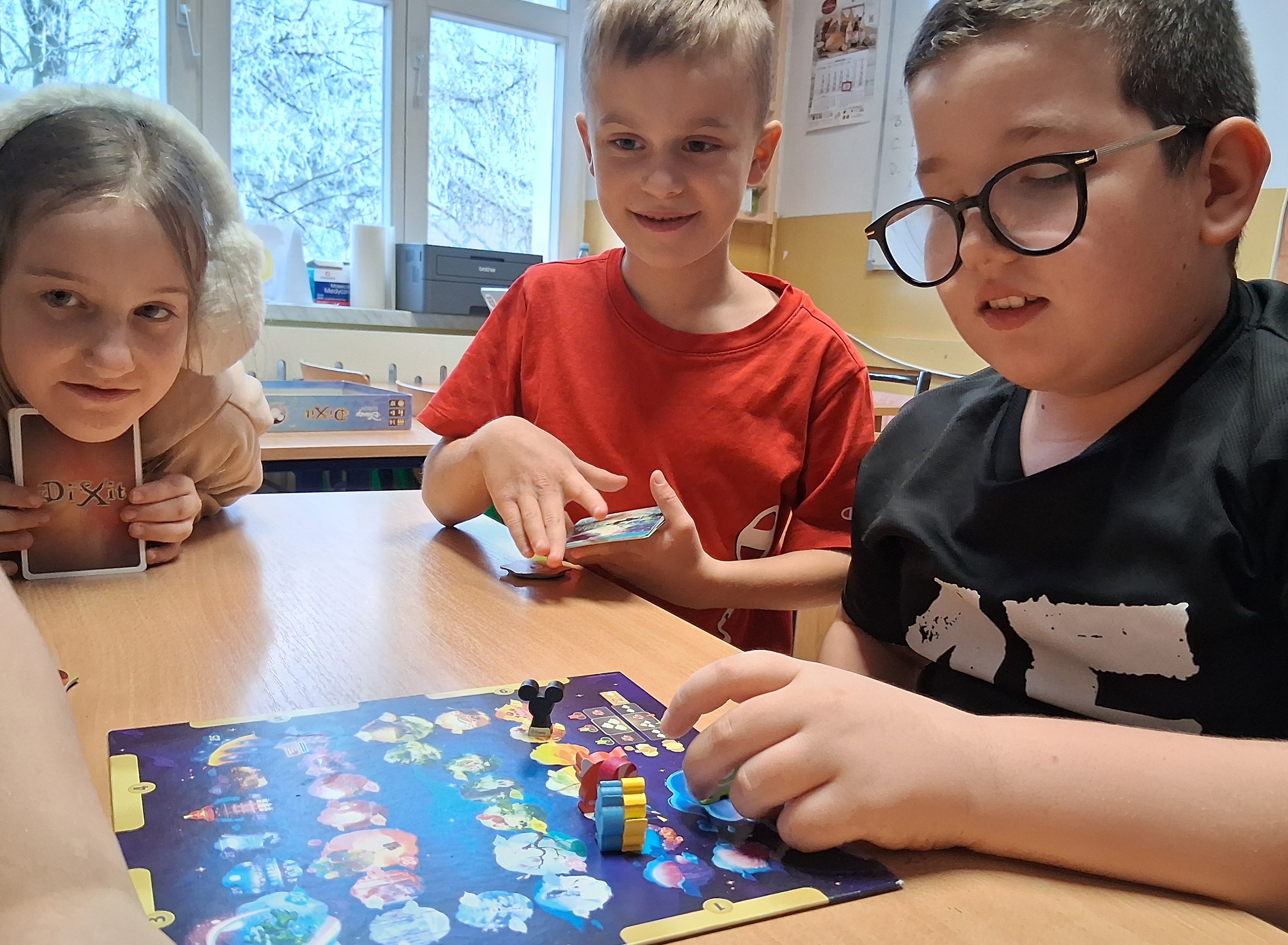 Podczas kolejnej Godziny z planszówką rozwijaliśmy umiejętności komunikacyjne i narracyjne. Gra Dixit zabrała nas do świata skojarzeń. Tu ważniejsze od rywalizacji okazało się odkrywanie, jak różnorodnie spojrzenia można mieć na ten sam świat:)