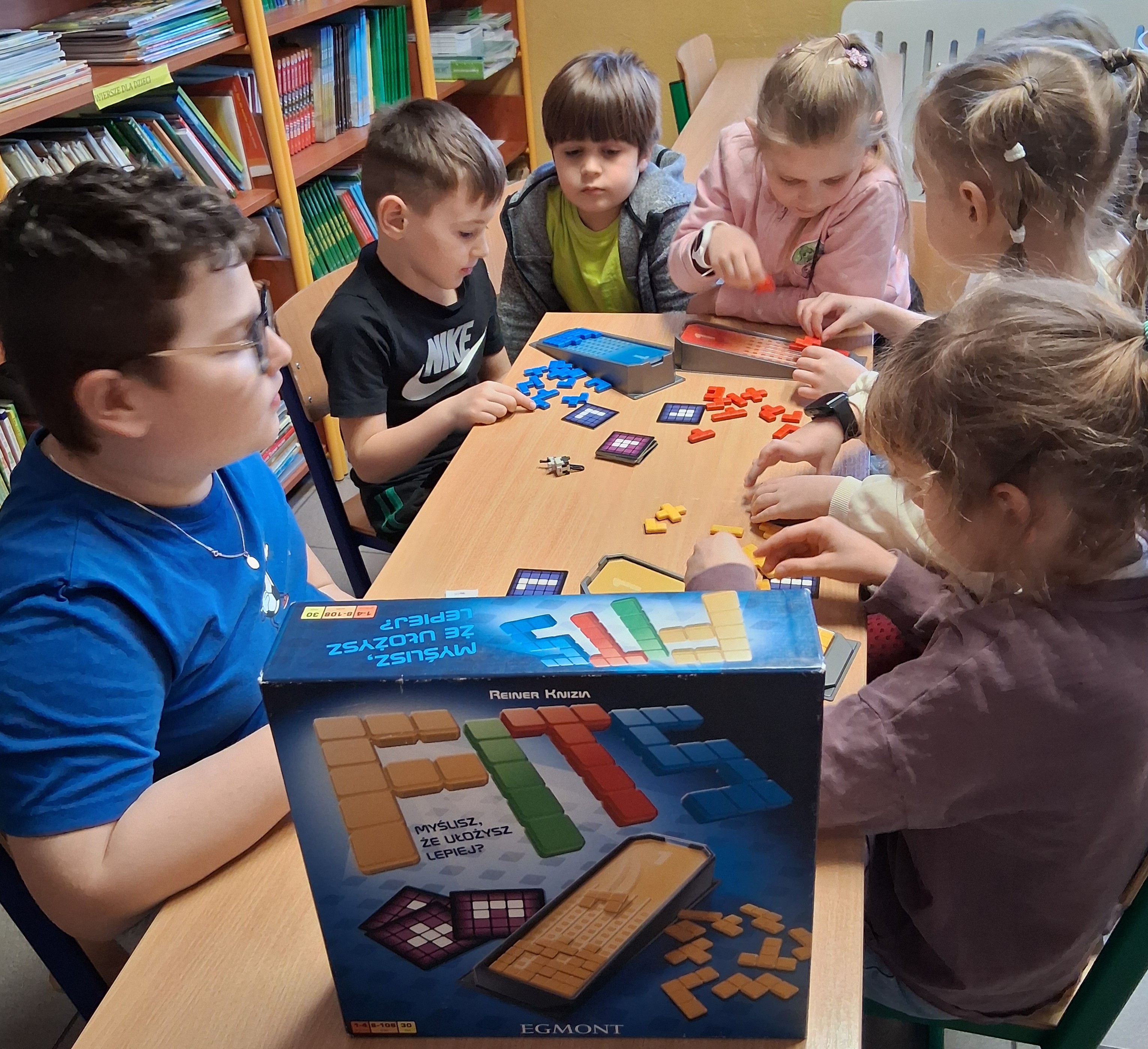 Na przełomie lutego i marca podczas bibliotecznej godziny z planszówką świetnie bawiliśmy się przy grze FITS – była to prawdziwa gratka dla fanów logicznego myślenia!