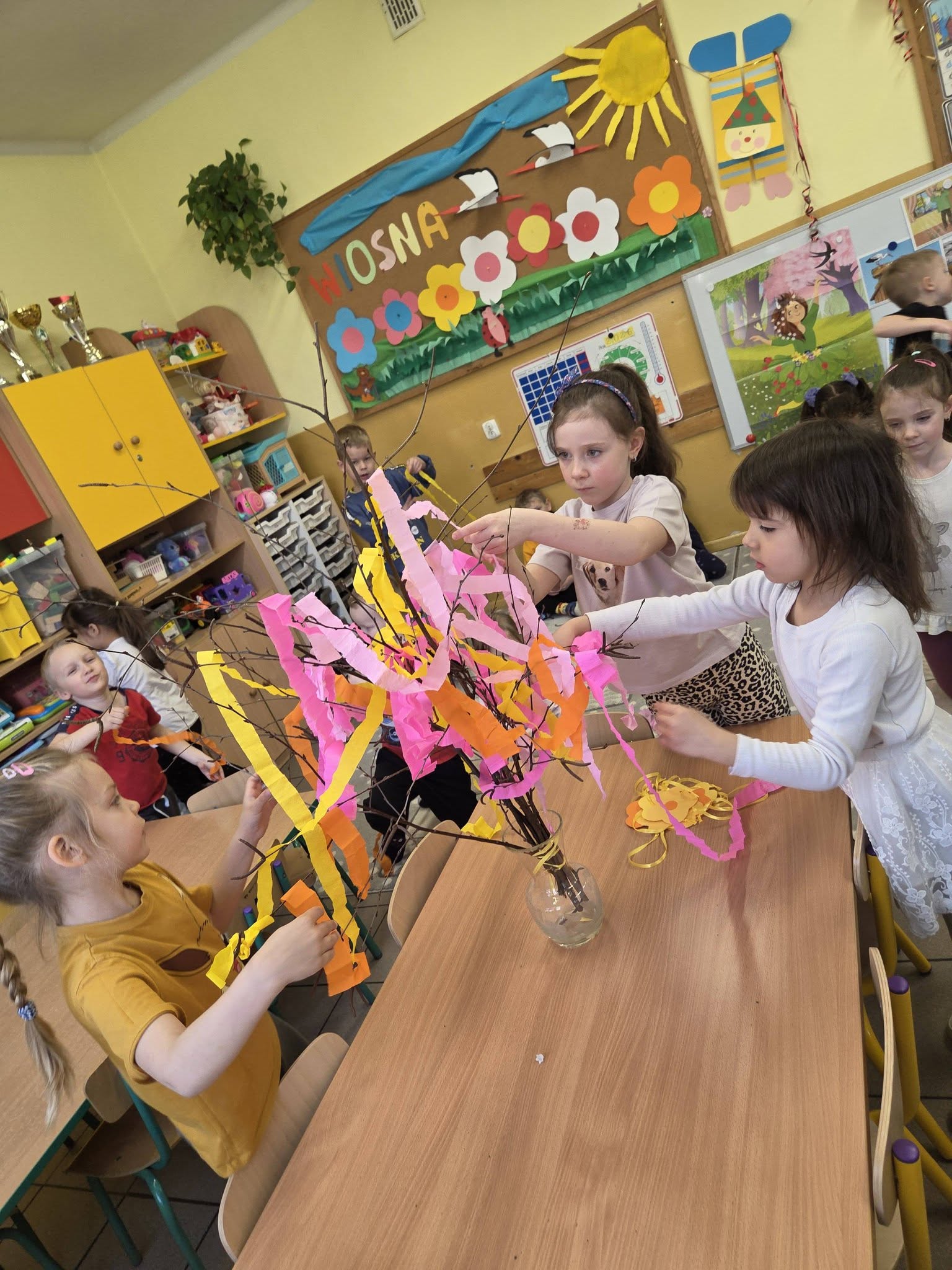 20 marca w zerówce radośnie powitaliśmy wiosnę 🌸 Rozmawialiśmy o jej zwiastunach, tańczyliśmy z bibułą i wysłuchaliśmy opowiadania „Powitanie wiosny”. Na koniec z wiosennym gaikiem wyruszyliśmy na spacer w poszukiwaniu oznak wiosny 😊